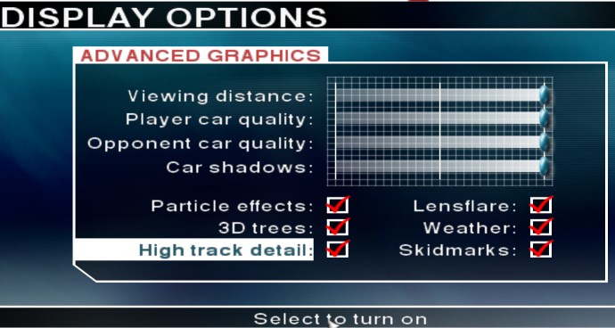 There are several graphics related settings you may wish to configure before hitting the road. To do so, start the game and choose “Start Game” from the main menu. Create a profile if necessary or choose an existing one. Now, select “Options” from the main menu and then select “Display Options”. Now, select “Graphics setup”.